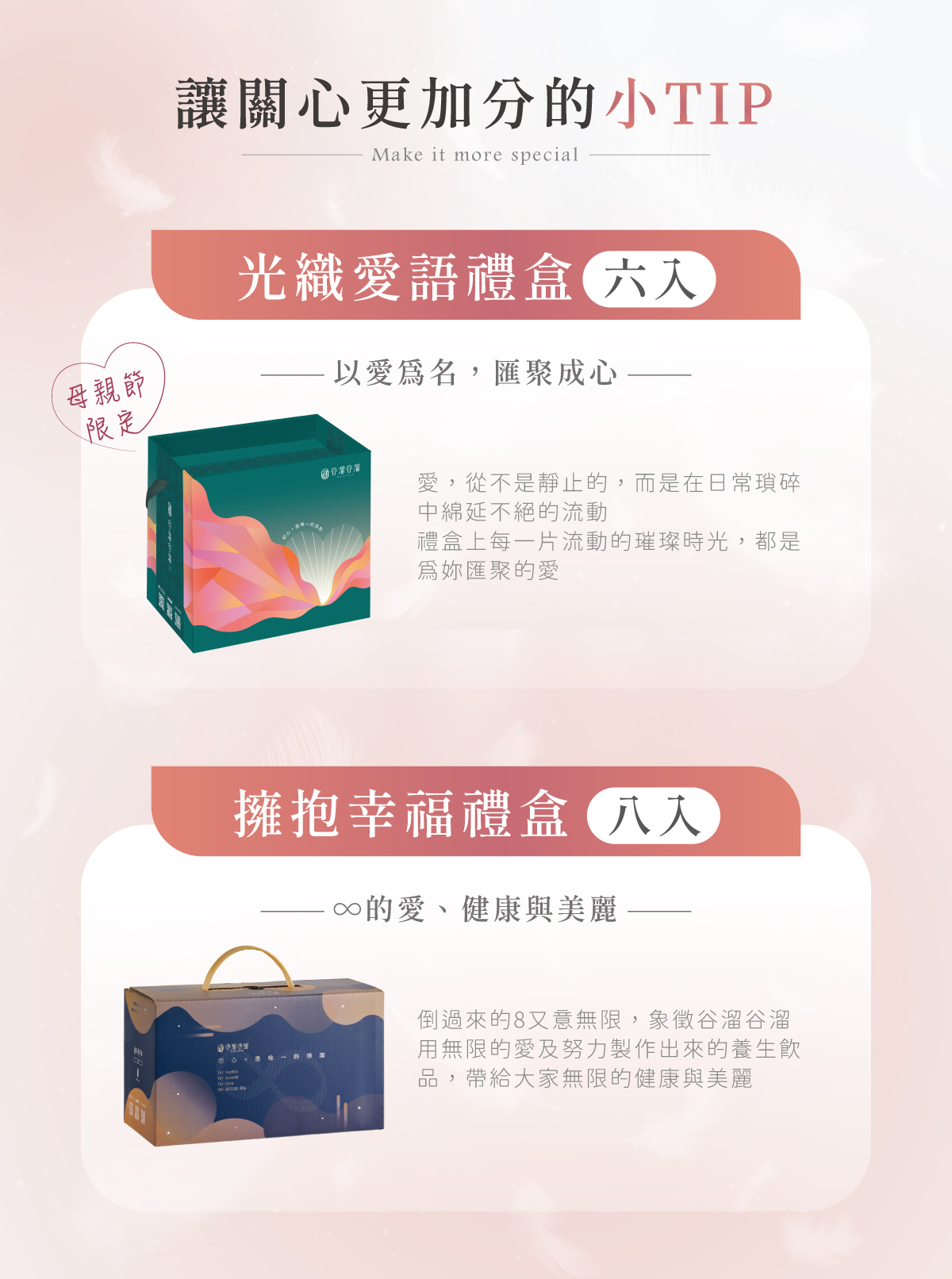 調整體質的井裡月、滋補強身的裸心、增強體力的紫相思,補充身體各類營養元素,滿足體內所需,全方位的組合,寵愛您摯愛的最佳選擇。 ... $670 $566