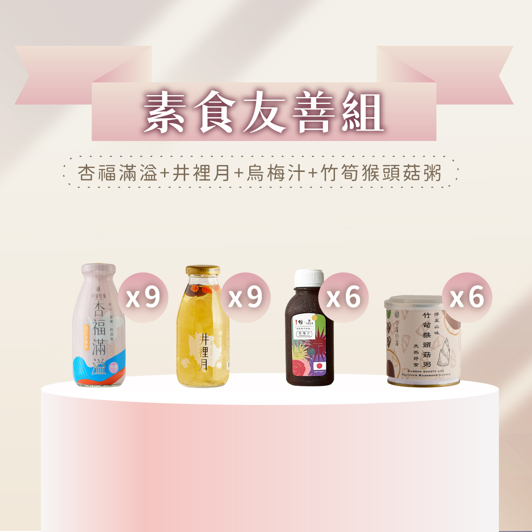素食友善組(杏*9+井*9+烏梅汁*6+猴頭菇粥*6)